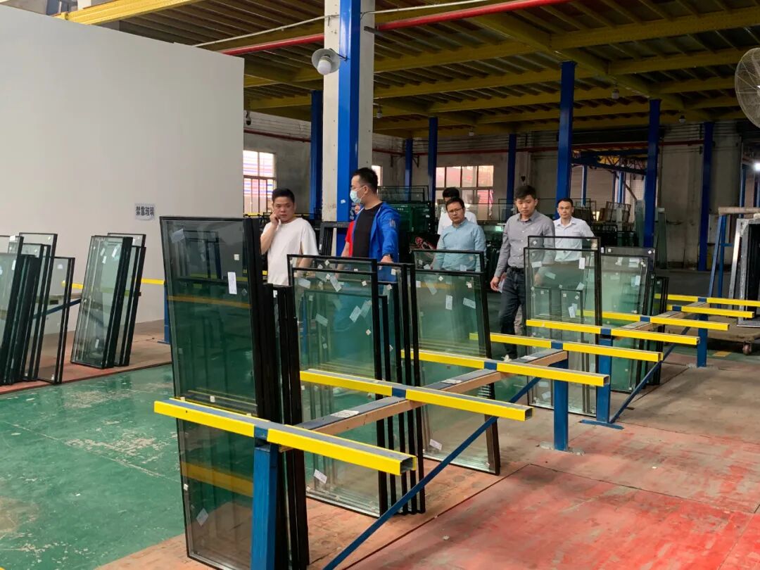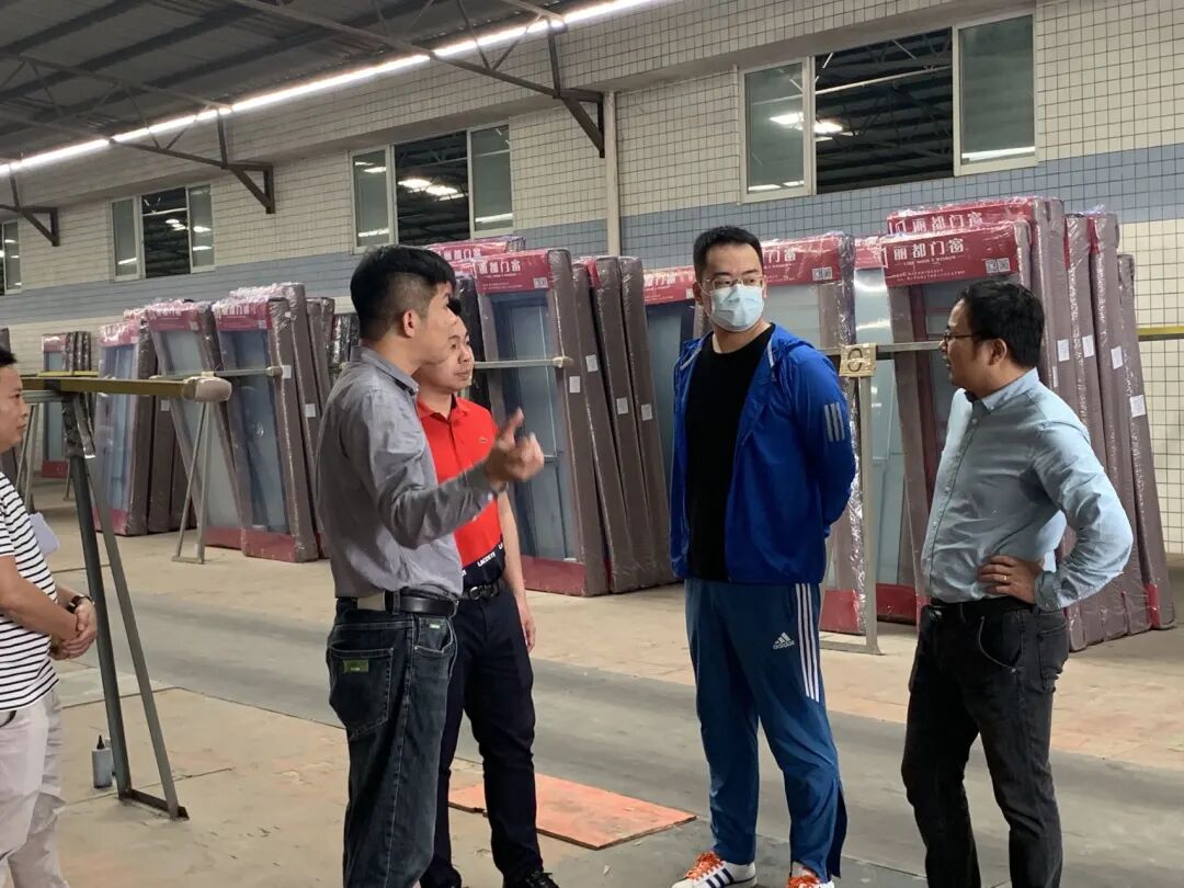 隨后,考察團在麗都門窗營銷總經理陳總、銷售總監李總等工作人員陪同下實地參觀考察了生產車間,從產品原料、產能、規格到產品檢測進行認真調研,雙方深入討論了制作細節、型材類型及玻璃工藝等。